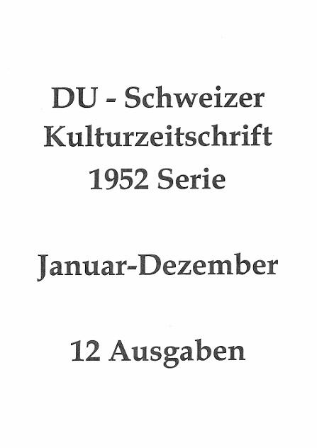 Du - 1952/01-12, Serie, Schweizer Kulturzeitschrift.